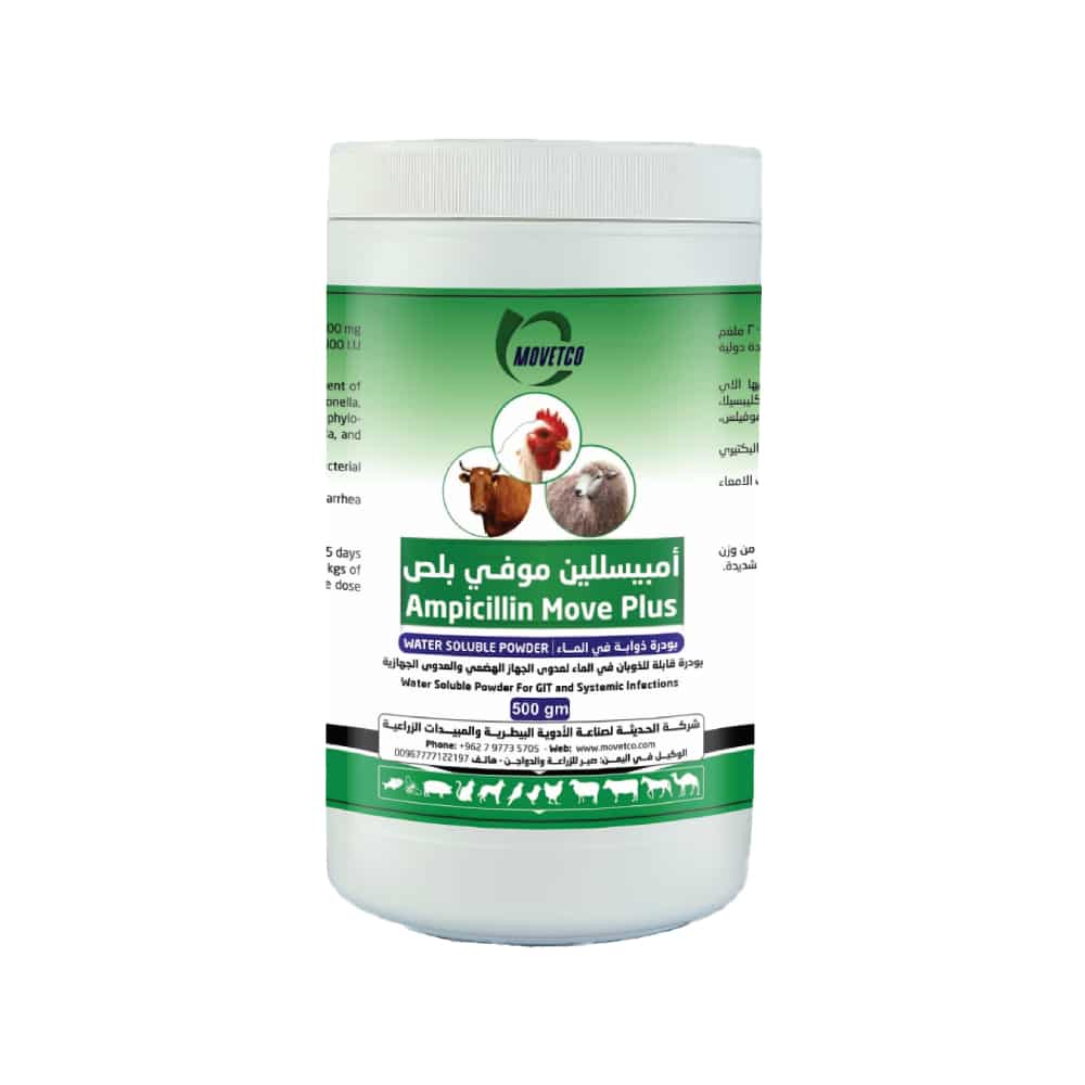 Ampicillin Move Plus — For the treatment of necrotic enteritis in poultry, other bacterial enteritis, septicaemia and other infections caused by Gram-positive and Gram-negative bacteria